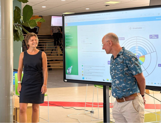 Marenka van Toor (expert onderwijs en innovatie op Het Westeraam) en Frank Crooijmans (adviseur kwaliteit en onderwijsontwikkeling) gingen afgelopen schooljaar aan de slag en ontwierpen samen een digitale tool die docenten en coaches helpt bij het begeleiden, beoordelen en uiteindelijk bepalen op welk niveau een leerling doorstroomt naar de bovenbouw. Een model dat leerlingen motiveert en stimuleert meer regie over hun eigen leerproces te nemen én met een holistische kijk op de leerling."